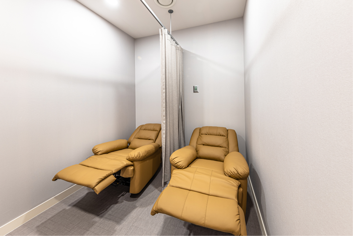 The operating theater and recovery room are connected, enabling one-stop management. Additionally, a one-to-one attending physician system is implemented for the expert management of recovery.
