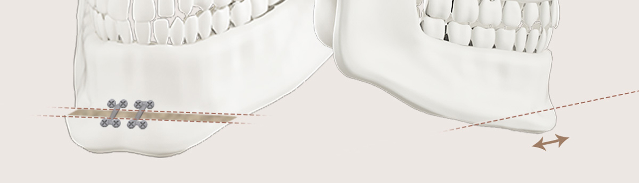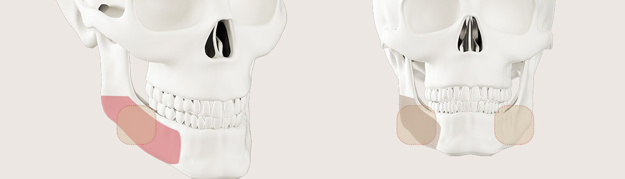 If osteotomy of the mandible alone has a limited effect because the square jaw is developed too far inwards, or if the body of the mandible is too thick, the cortical bone is removed to improve the effect from the front.